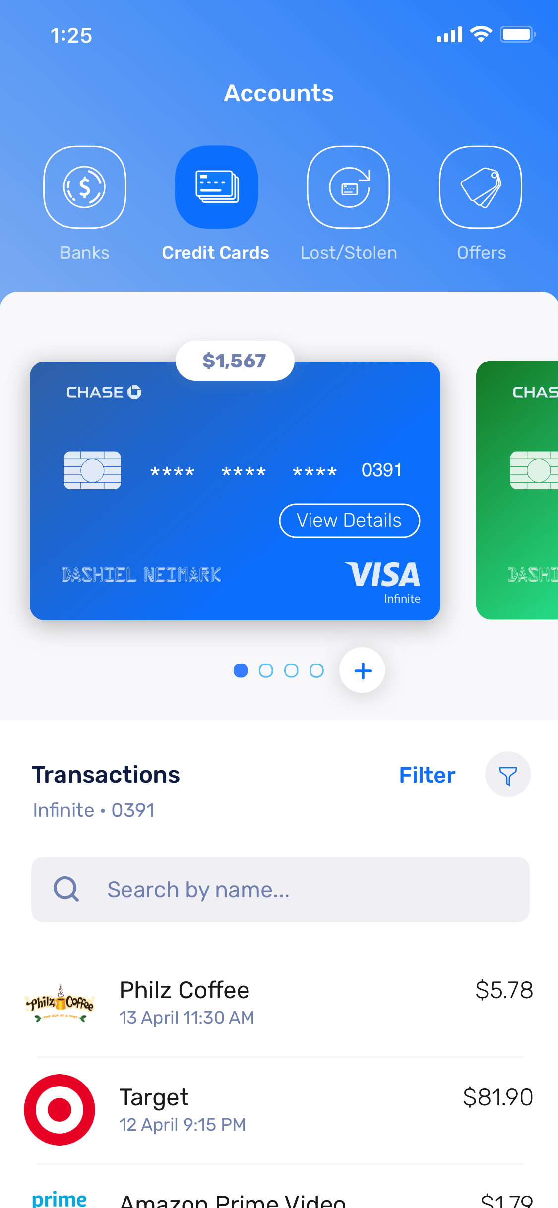 However, as we were observing customers using various competitor apps, an important insight was that they actually described and thought of credit cards as distinct from their checking/savings accounts.