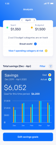 Define savings goals and analyze financial activity over various time periods