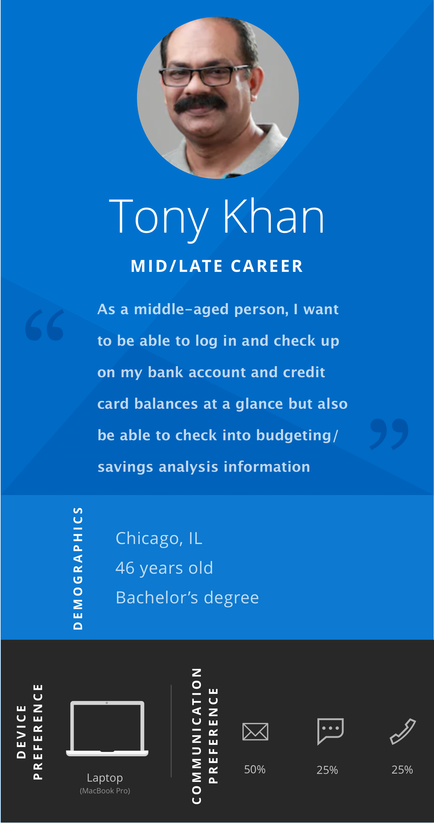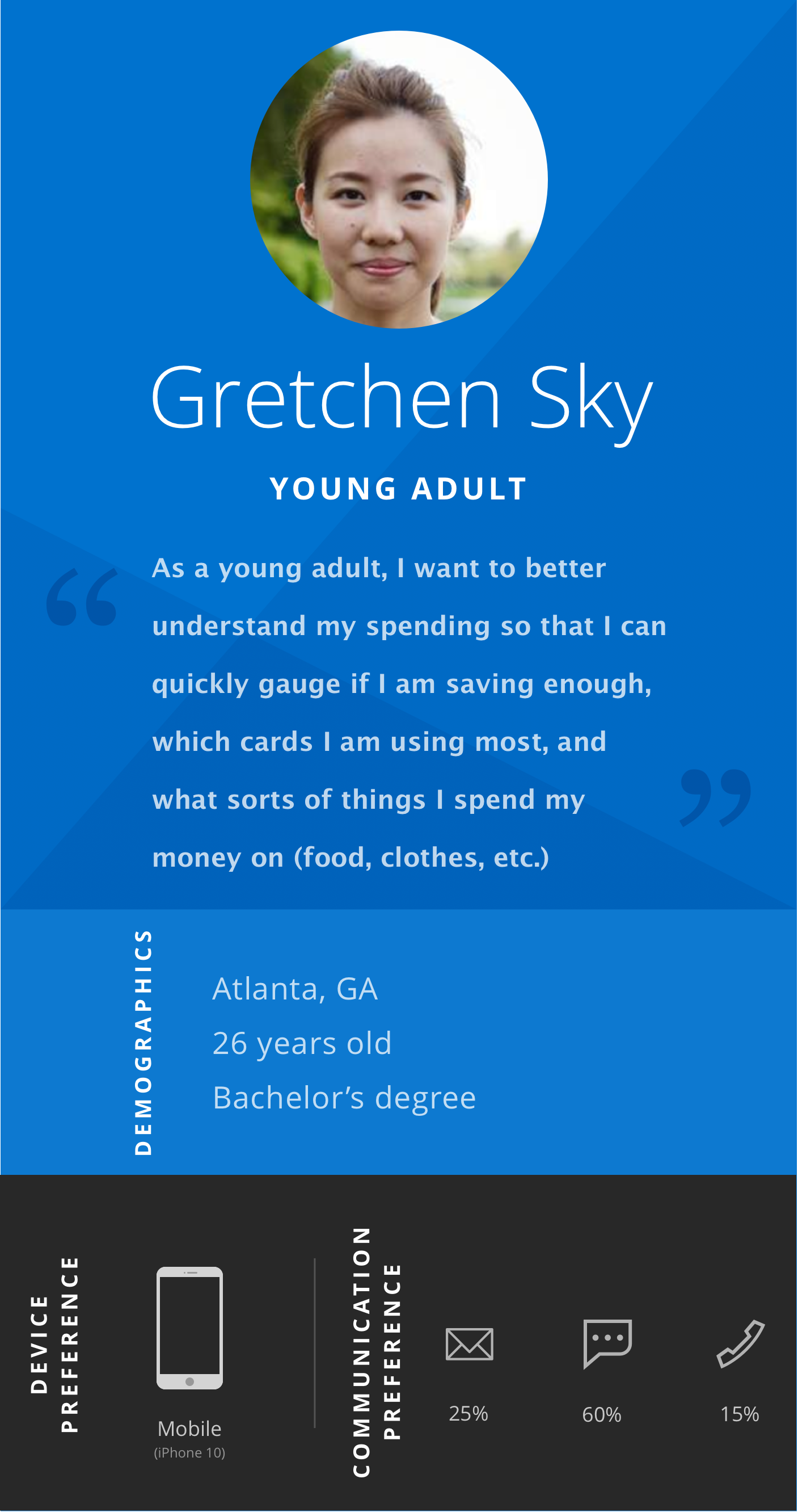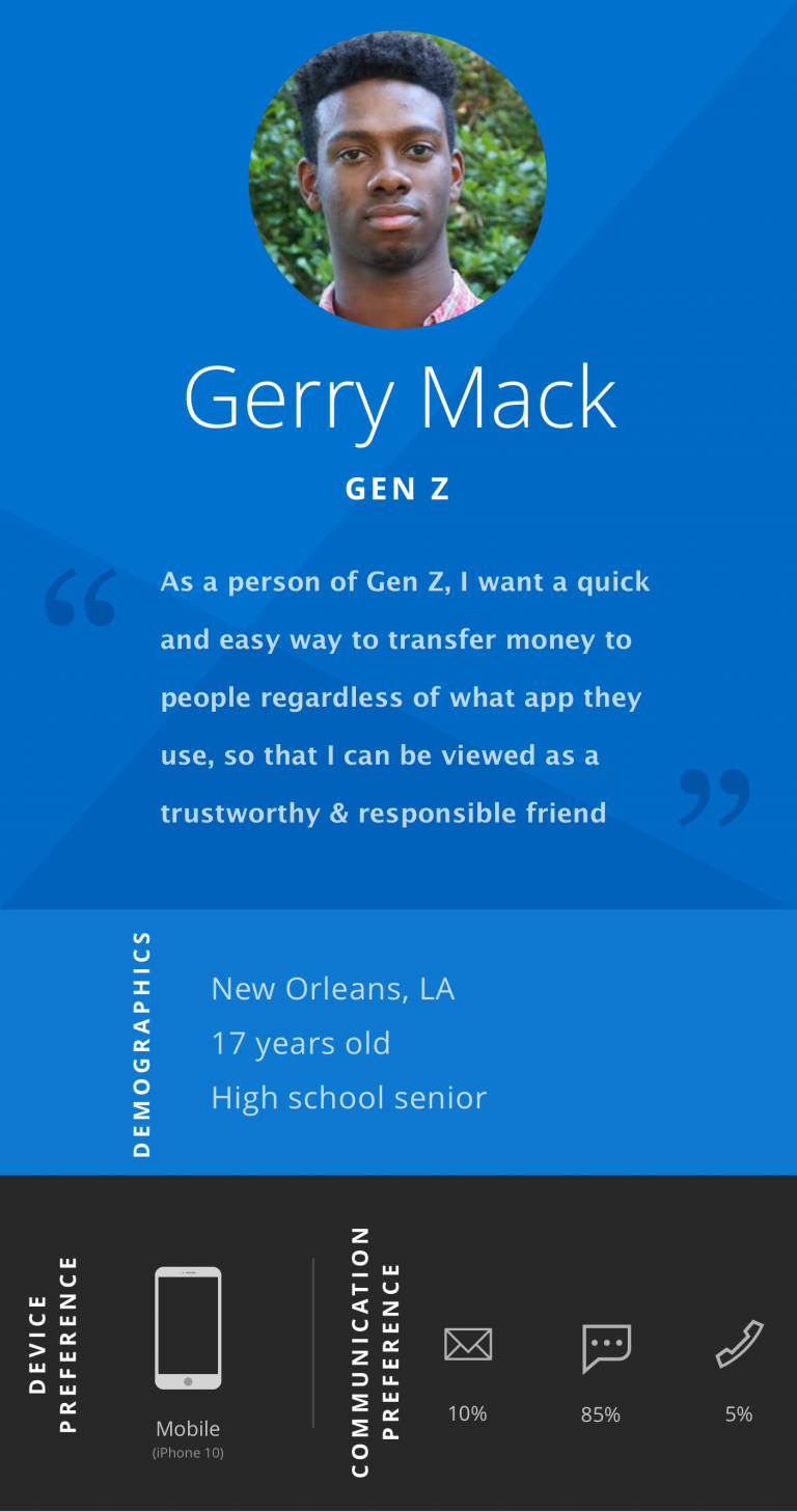Coming out of the empathy phase, we took our insights and began creating research artifacts to summarize our findings. One type of these artifacts was the persona.