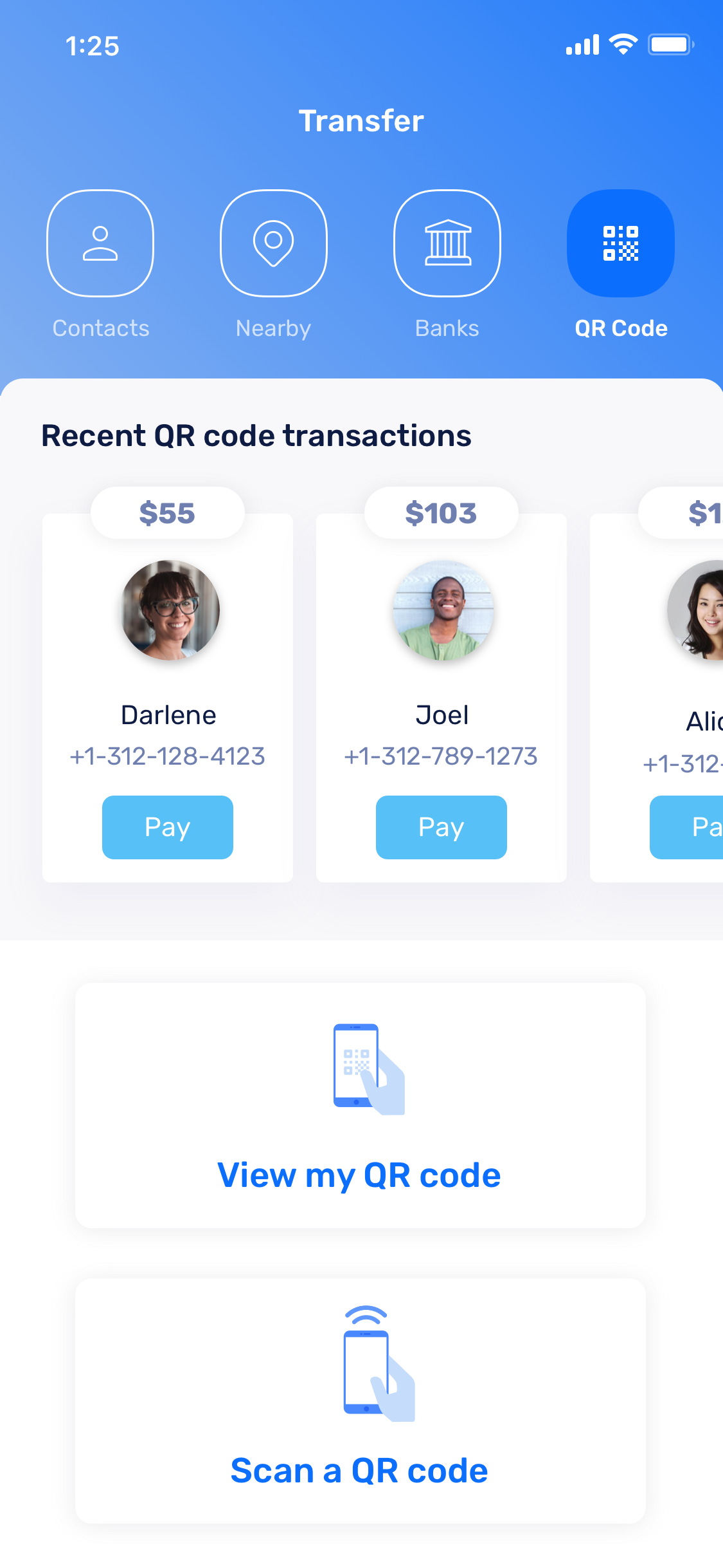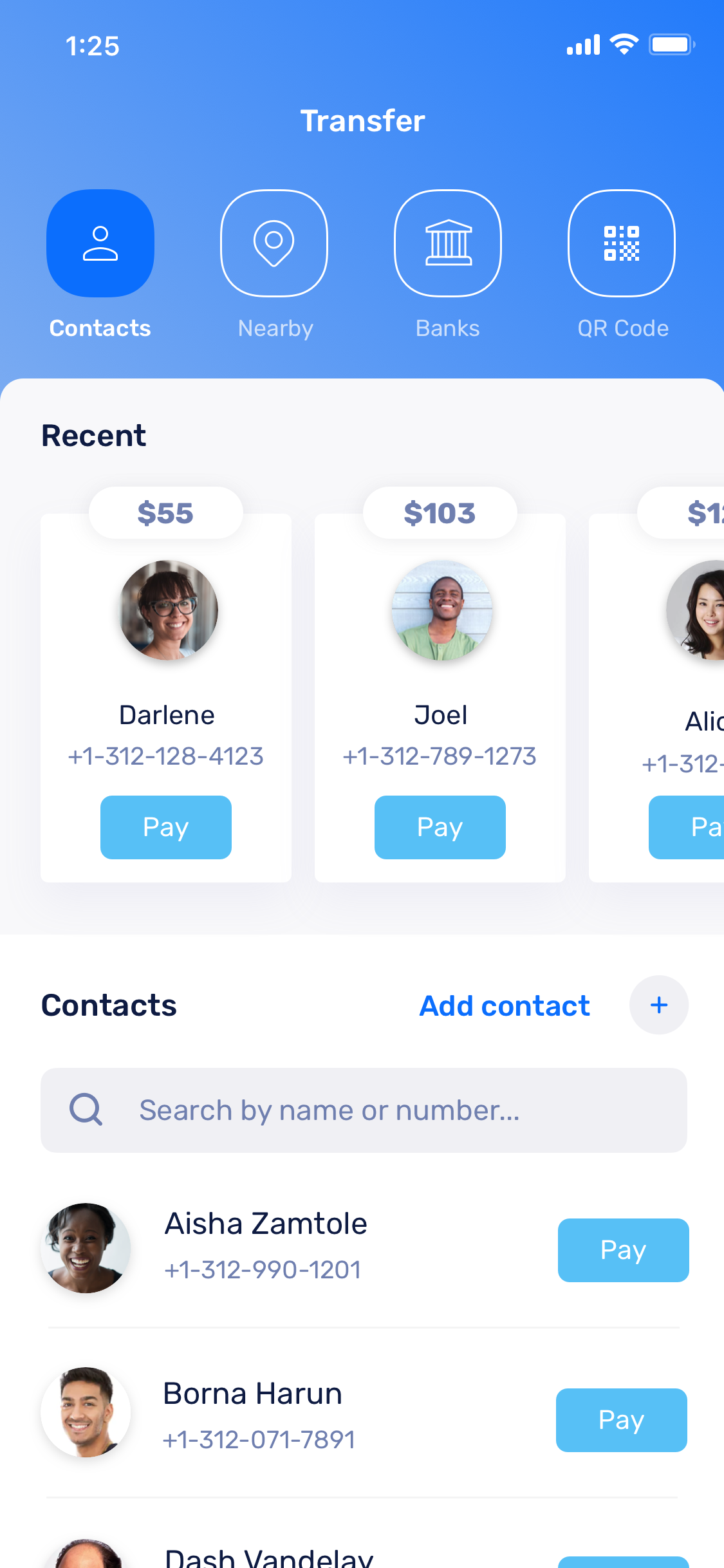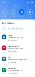 Transfer money to contacts, nearby users, and banks