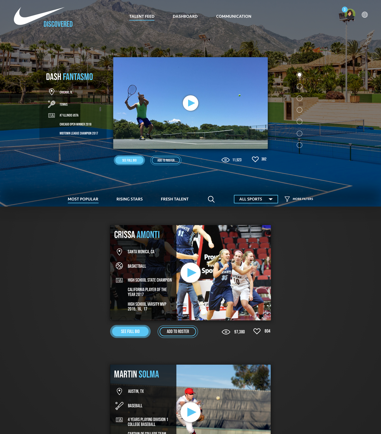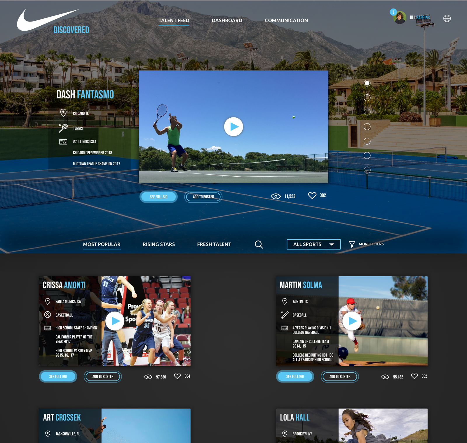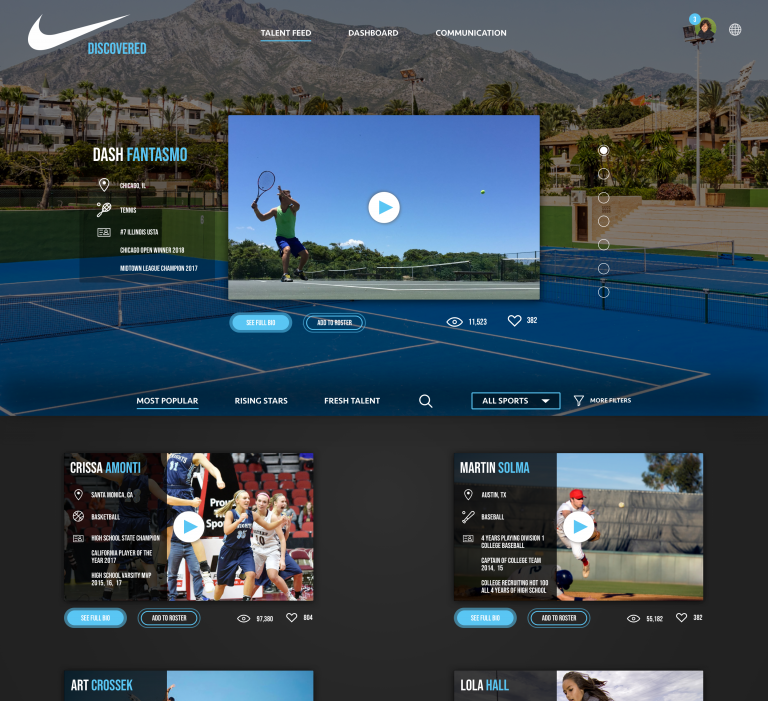 Creating a digital experience that could creatively increase value-driven, targeted brand representation at scale by allowing Nike Brand Managers to discover new talent in the amateur athlete world.