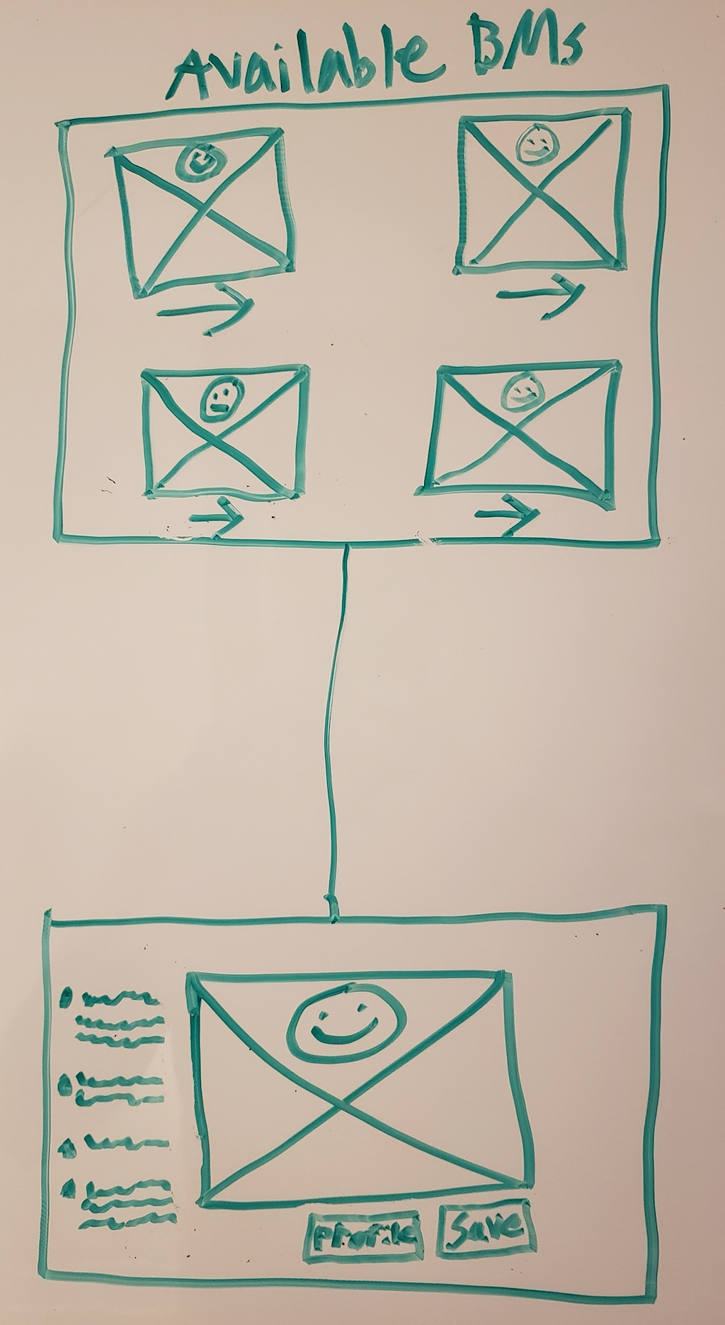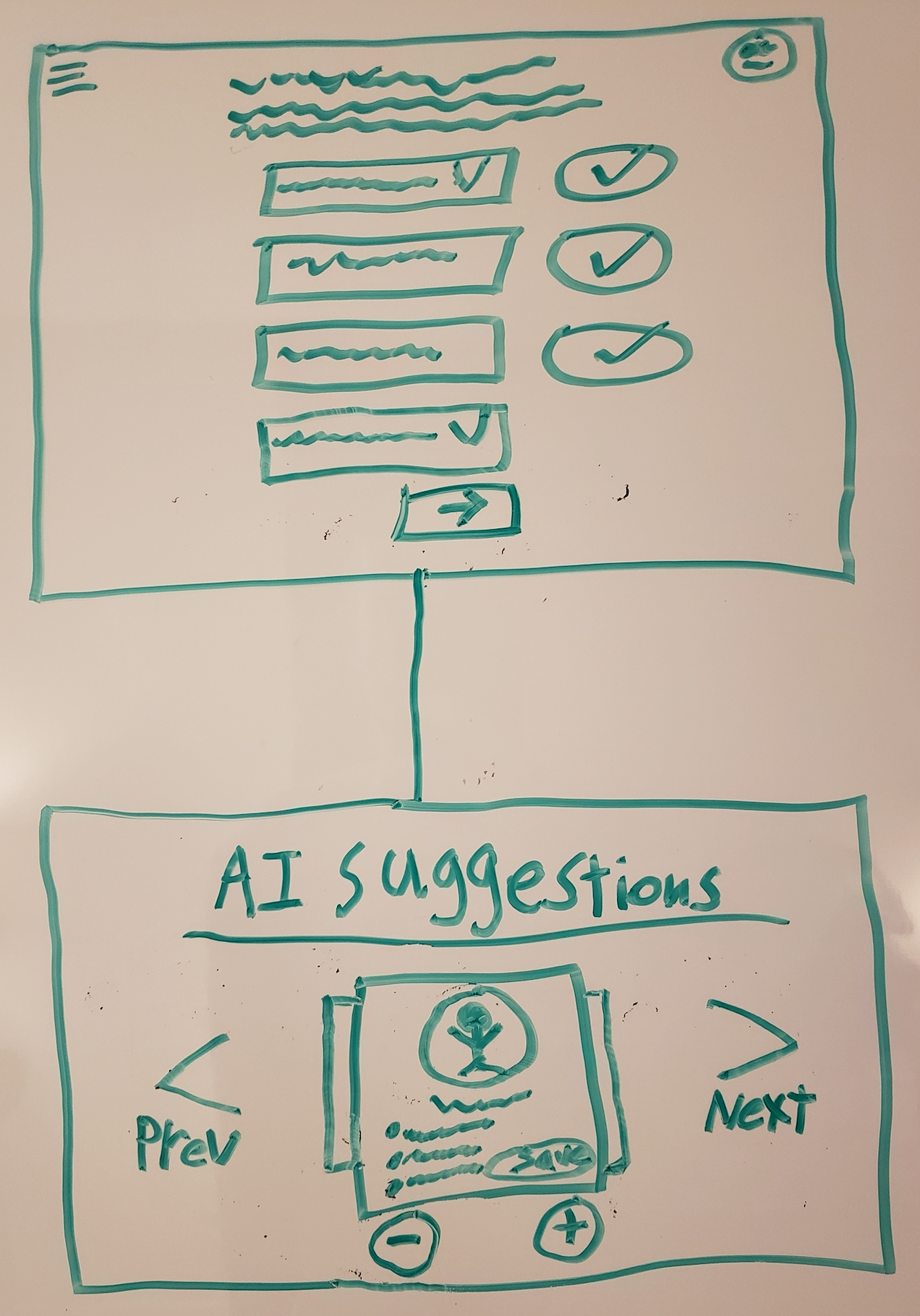 Quite a bit of time was spent iterating through low-fidelity whiteboard concepts, blockframes, and clickable prototypes.