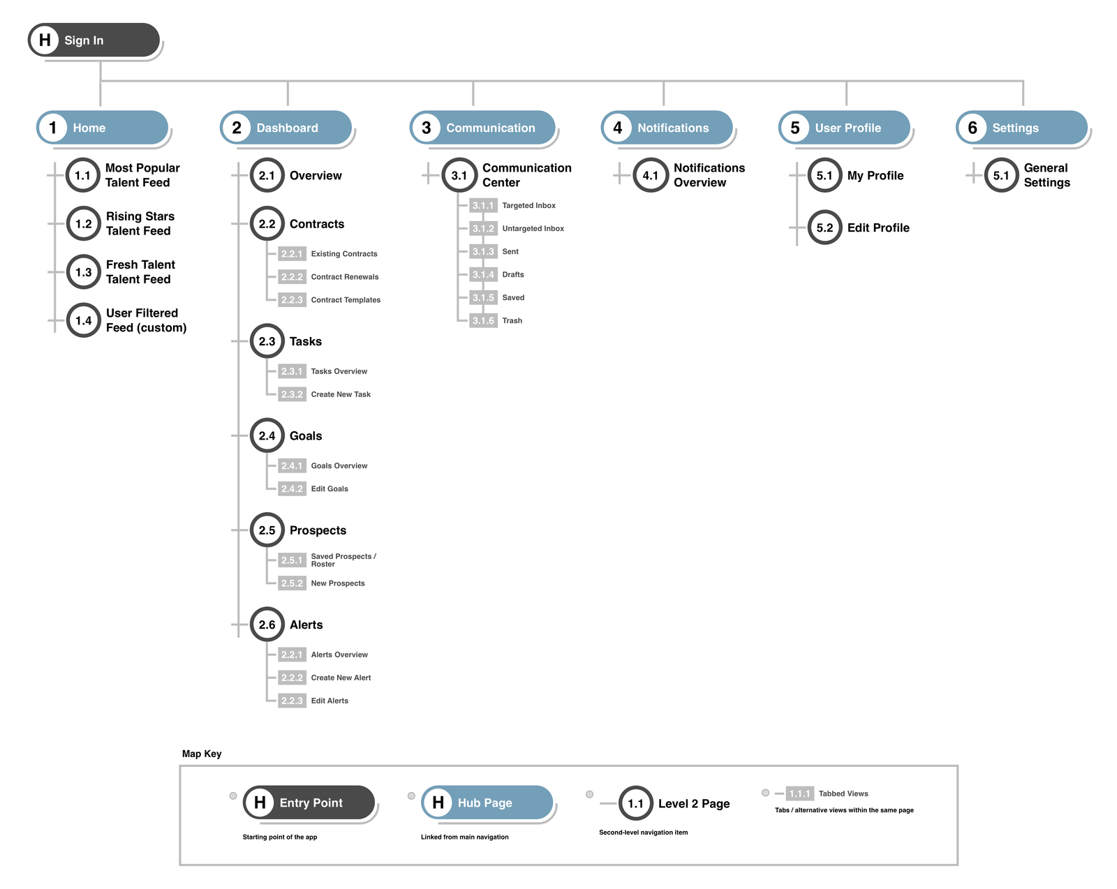 This is the sitemap for the brand manager application that I created at the end of the project once we determined the final flow and organization of all the pages.