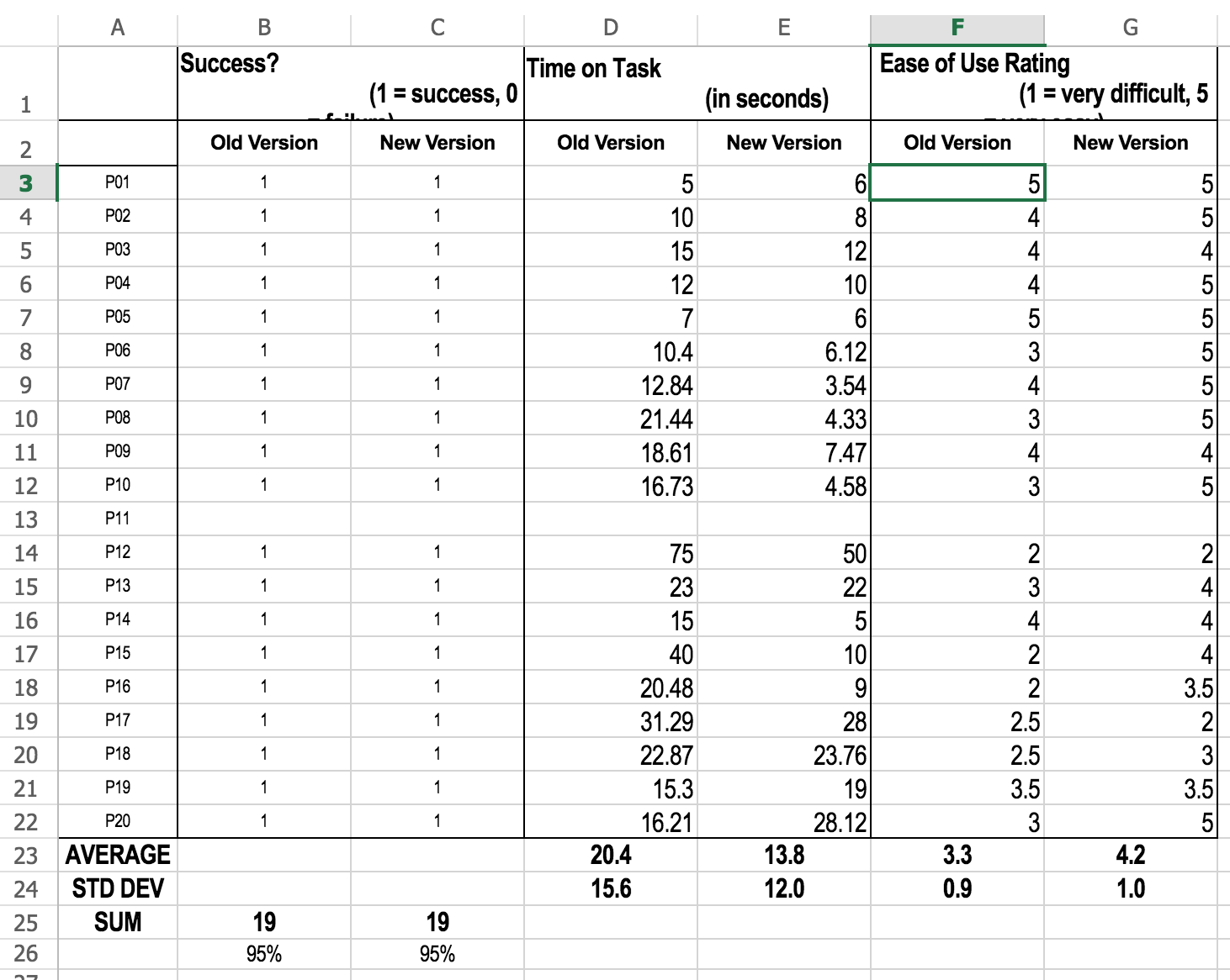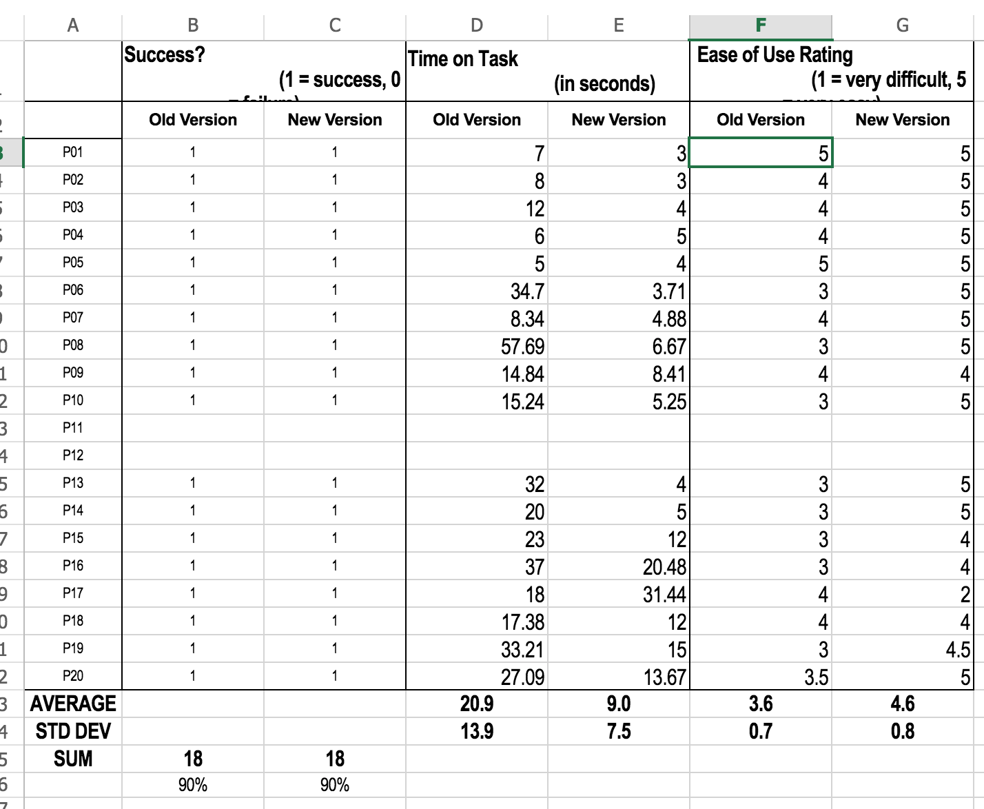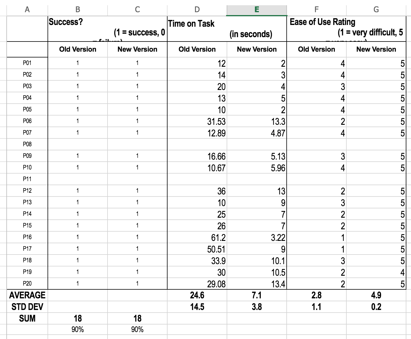 In the case of the ComEd billing system, users were evaluated on several quantitative measures: success / fail rate, time on task, and ease-of-use ratings.